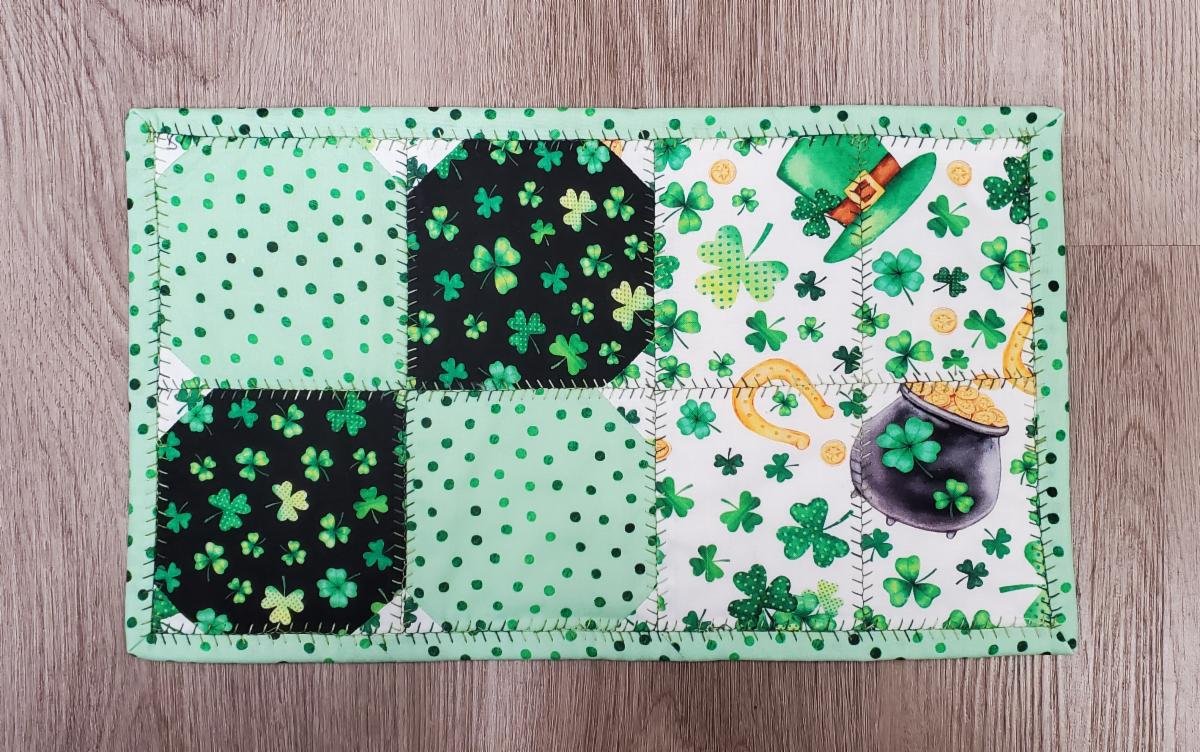This charming Shamrock Snack Mat is the perfect addition to your kitchen or dining area, especially during festive occasions. This mat features a delightful green and white shamrock pattern, ideal for adding a touch of Irish luck to your snack time.