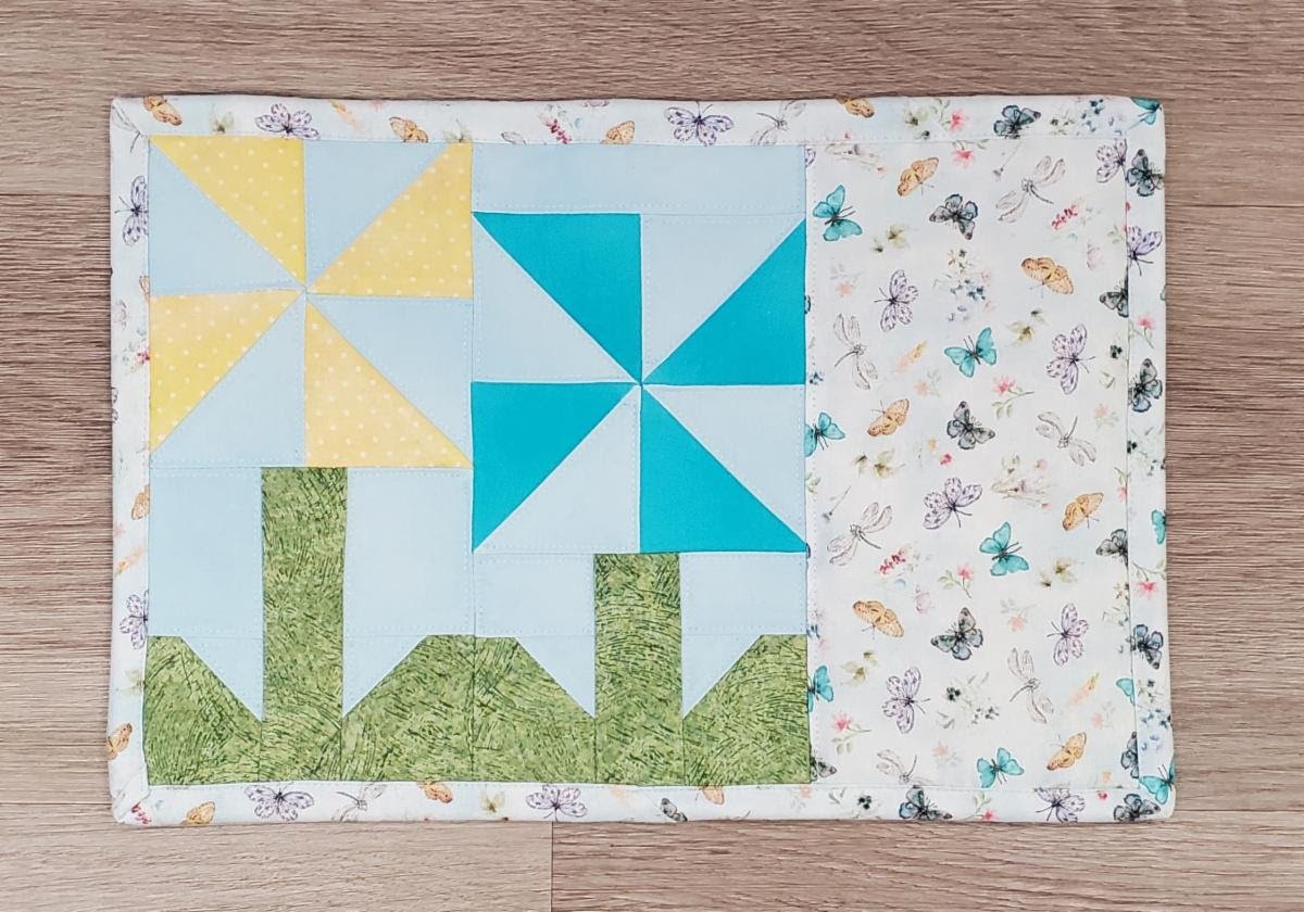 Craft a charming addition to your table setting with the Pinwheelies Snack Mat, a delightful quilted mat perfect for snacks or small meals. Ideal for both personal use and as a thoughtful gift, this snack mat combines functionality with aesthetic appeal, making it a versatile piece for any home. Snack mat measures approx. 8" x 14".